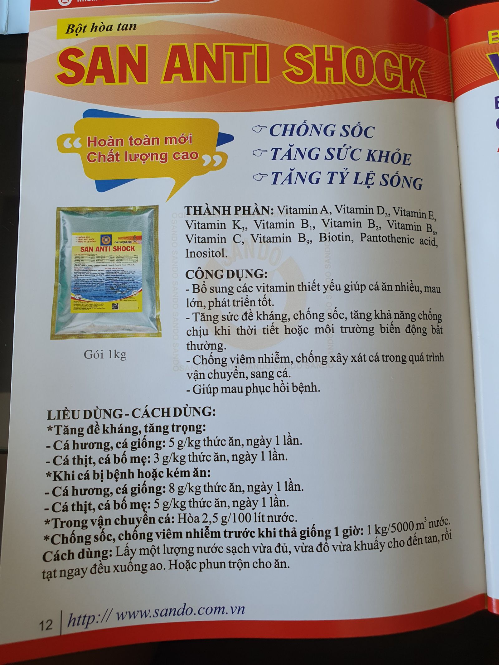 Sau đó dùng tiếp sản phẩm SAN ANTI SHOCK để lươn được khỏe lại, giảm stress với liều 20g/m3